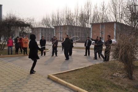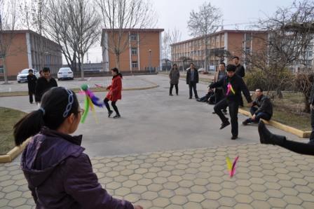 下午3时许,大家在指定地点集合,在赵院长的带动下,大家首先进行了热身活动。十几分钟之后,比赛正是开始。首先进行的是跳绳计时赛,即参赛选手同时起跳,不计数量,先中断者被淘汰,最后中断者获胜。接下来进行的是踢毽子计时赛。最后进行的是跳绳一分钟争夺赛,即一分钟内跳绳数量多者取胜。比赛都是三人一组,每项共进行了六组比赛,获胜的三人再进行冠、亚、季军的争夺。共决出三名冠军。