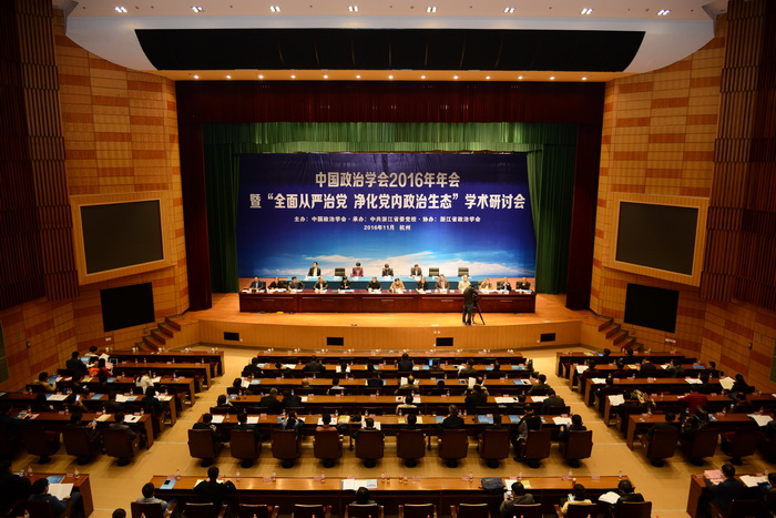 11月5日至6日,由中国政治学会主办、中共浙江省省委党校承办、浙江省政治学会协办的“中国政治学会2016年年会暨‘全面从严治党净化党内政治生态’学术研讨会”在浙江省省委党校召开。浙江省人大常委会原副主任、省党建研究会会长、省文史馆馆长王永昌出席会议,中国政治学会会长李慎明作书面致辞,浙江省省委宣传部常务副部长胡坚、常务副校长陆发桃、中国政治学会副会长王一程、浙江省政治学会会长余逊达、浙江省省委党史研究室副主任王祖强分别致辞。