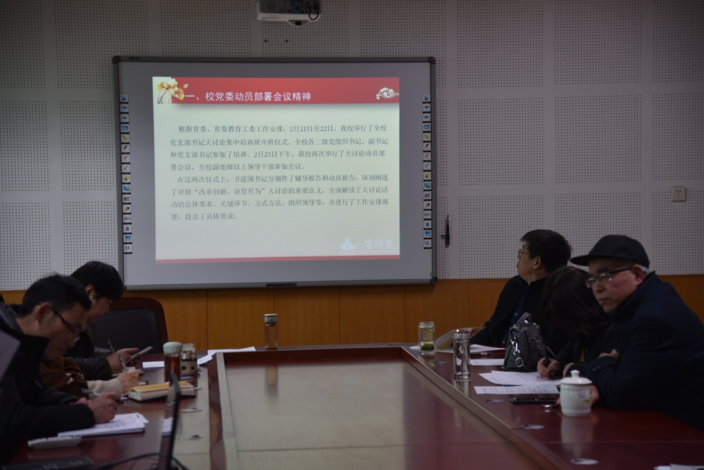 在A-508多功能室召开“改革创新、奋发有为”大讨论动员会议。全体教职工和学生党员参加,院党委书记王银主持会议。