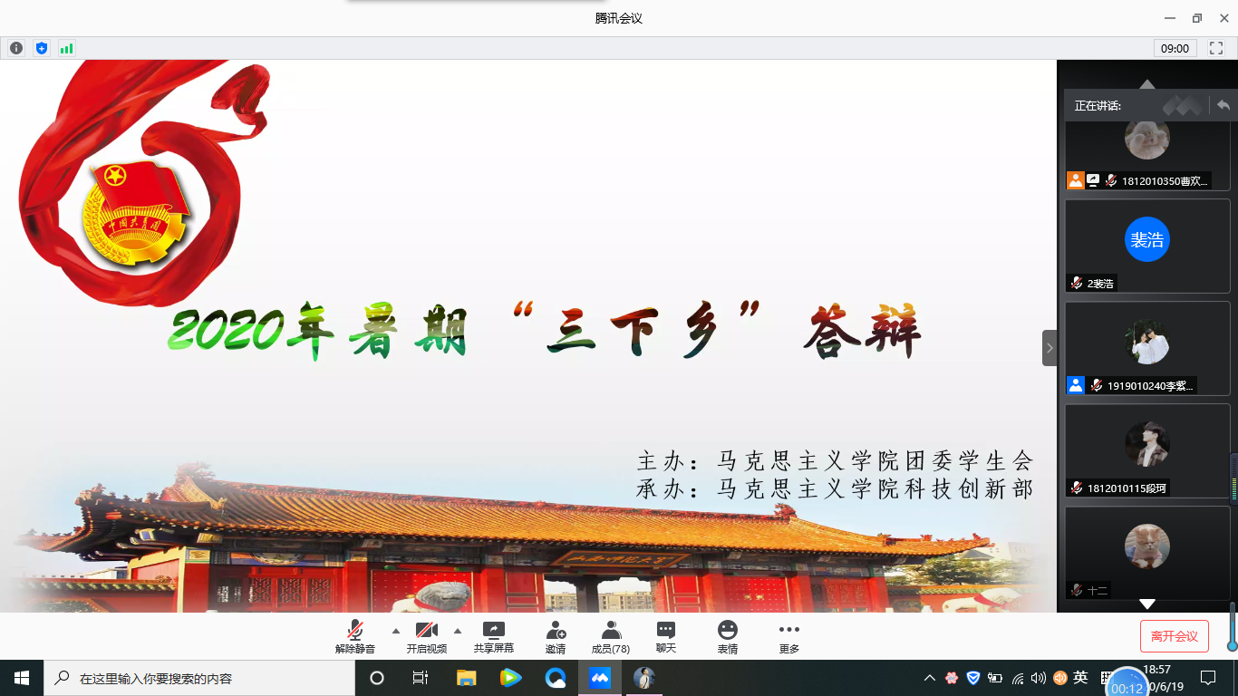 团委于6月19日召开“2020年暑期三下乡社会实践活动”线上答辩会。本次三下乡全体队员参与会议。
