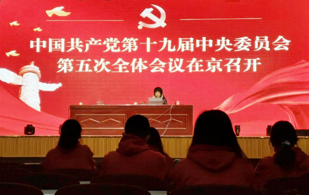 在关于“党的十九届五中全会精神解读”的辅导报告中,赵老师重点介绍了改革中要处理好的五大关系,她运用数据对比进行了讲述,显示了中国的快速发展。她指出,党的十九届五中全会是在全面建成小康社会胜利在望、即将开启全面建设社会主义现代化国家新征程的历史交汇点上召开的一次具有里程碑意义的重要会议,要将党的十九届五中全会精神学深悟透、融会贯通,勇于担当,做时代新青年。会上,赵老师强调,全校各级团组织和青年学生要将学习好、宣传好、贯彻好、落实好会议精神作为长期时间内一项重大政治任务。在今后学习中深入落实全会精神,从内容与形式、理论与实践等方面不断加强对全会精神的宣传工作,动员身边青年学生加入到宣传热潮中去。引领学生骨干加入服务青年学生大局之中,以高度负责的态度为我校书写新时代共青团新篇章,主动肩负起中华民族伟大复兴的中国梦的历史使命,争做担当民族复兴大任的时代新人。
