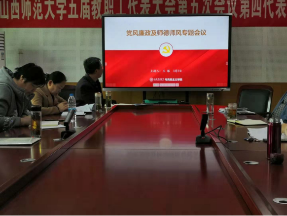 在科学会堂A508召开党风廉政及师德师风专题工作会议。全体党政领导班子成员及各岗位负责人参加会议。院党委书记王银主持会议。