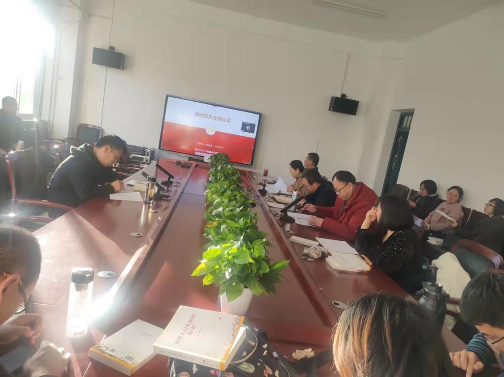 最后,王银书记做总结发言。他强调,师德师风建设永远在路上。全体教职工要认真贯彻落实师德师风建设的要求,不忘立德树人的初心,牢记为党育人、为国育才的使命,积极修为,不断涵养高尚师德,提高教育管理能力和教书育人水平,努力将课堂作为发挥自己作用的主要岗位阵地,切实承担好铸魂育人的时代重任。