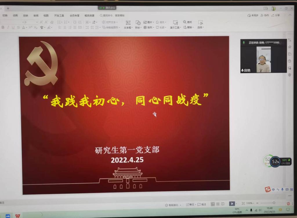 研究生第一党支部开展“我践我初心,同心同战疫”主题党日活动,红色引擎教工党支部段艳同志应邀参加了此次活动。