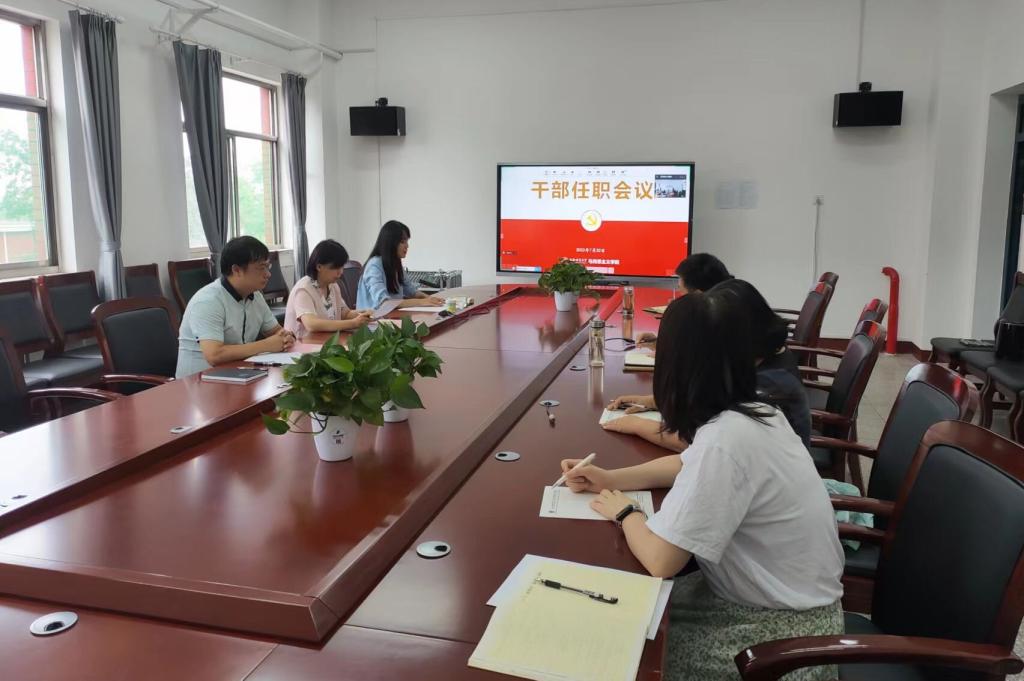 于南区1号楼506会议室召开干部任职会议,线上线下同步进行。组织部副部长李企婷出席会议,全体教职工参加会议。会议由院党委书记乔瑞主持。