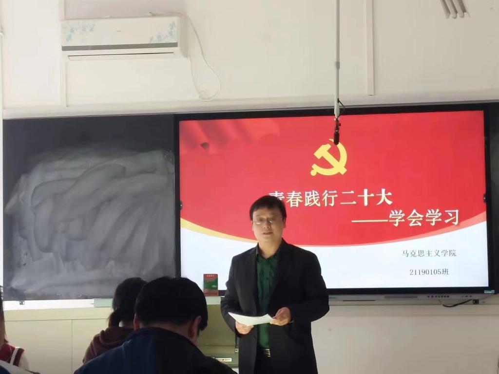 首先杜辉老师阐明了召开本次班会的目的和期望,通过学习党的二十大报告,使我们明确了党波澜壮阔的历史进程与党的学习一直同向、同行。同学们理解了学习的重要性,本次主题班会杜老师从学会学习着手,希望同学们要学会处理大学阶段的各种学业矛盾,学会学习。然后班长高慧玲介绍分享交流流程,同学们有序上台分享学习和活动的经验。学委吴东权传达了赚钱软件