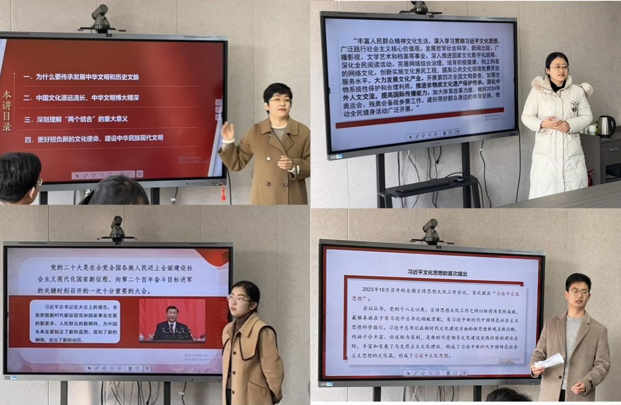 的18位青年教师分别选取习近平文化思想、新质生产力、人与自然和谐共生、当前就业形势、乡村振兴等时政热点进行了《形势与政策》课教学基本功展示。王晓荣等评委老师进行了针对性和专业性点评,遴选活动既是一次展现新时代思政课教师风采的平台,也是兼职思政课教师们相互学习、交流的良好机会,不同专业背景的青年教师们交流讨论热烈,教学基本功展示取得了预期的积极效果。