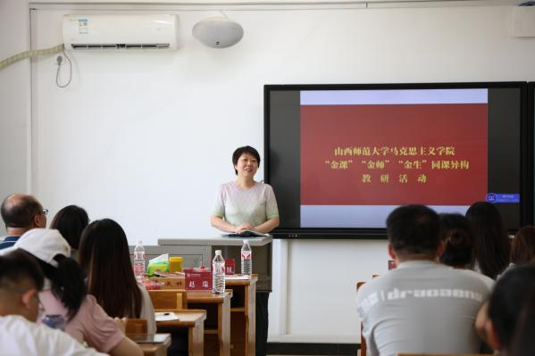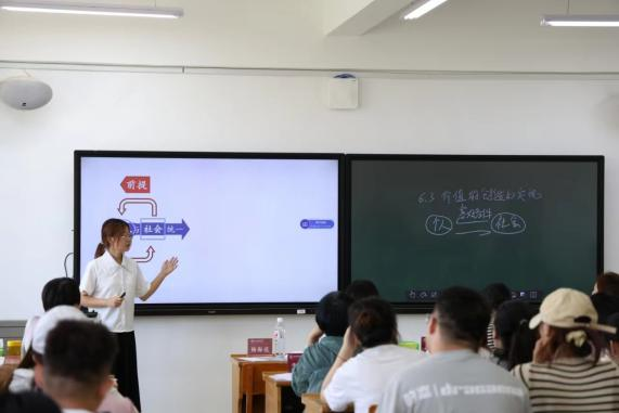 2022级思想政治教育专业本科生刘杰璐和太原市成成中学胡丽萍老师,本科生李百惠和太原市六十中学校冯涛老师,本科生李亚峰和临汾一中袁彪老师,本科生蔡朋均同学与榆次二中张晓璇老师分别围绕“法定继承有顺序”“我国政府的经济职能”“公正司法”“在个人与社会的统一中创造和实现价值”四个主题开展同课异构教学展示,老师和学生的精彩表现赢得在场师生的阵阵掌声。