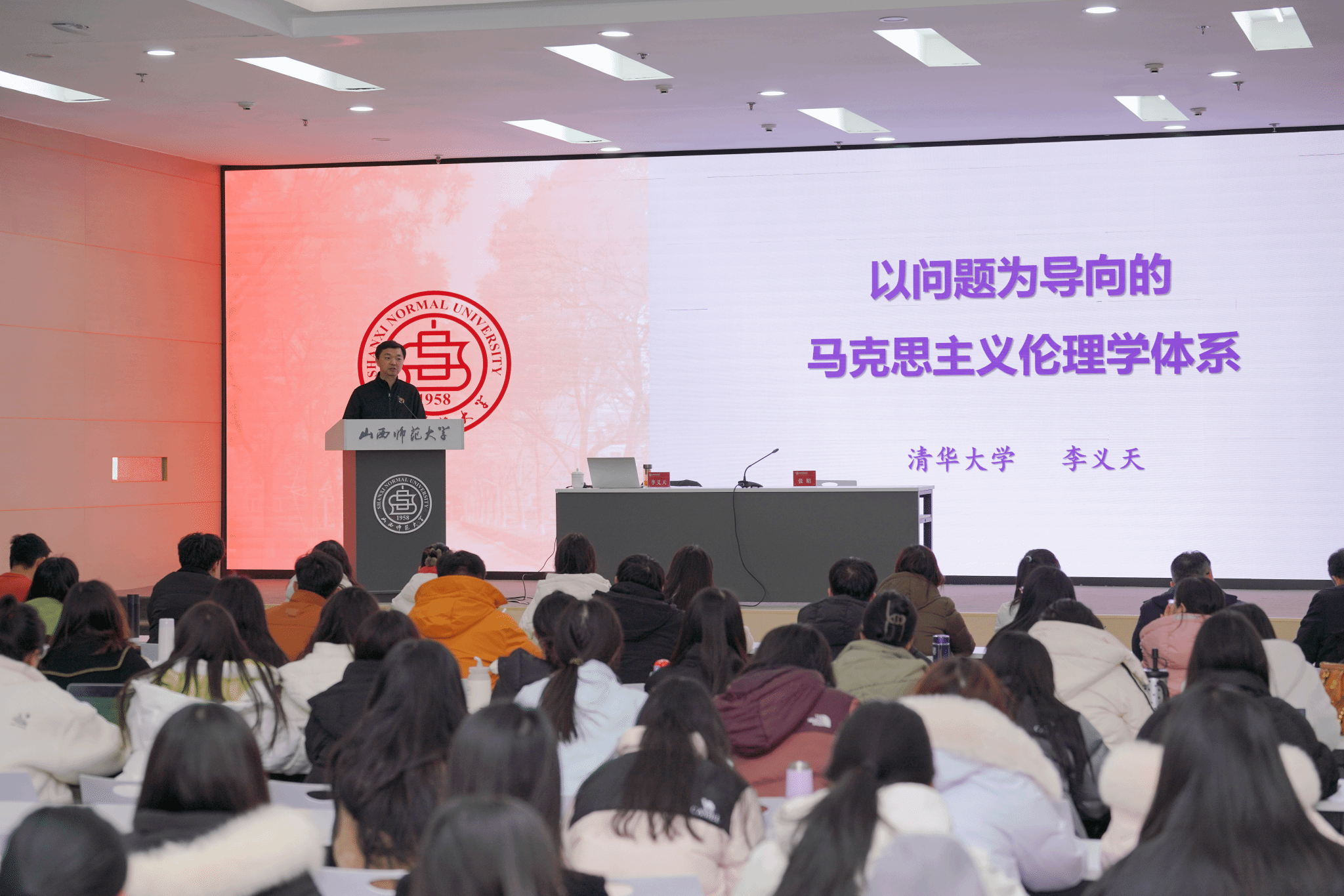 李义天教授以构建马克思主义伦理学的问题意识为导向,以个人研究经历为主线,在对学术既有研究成果分析的前提下,立足经典原著,围绕马克思主义伦理学体系构建需要澄清和解决的“前置问题”“初始问题”“基本问题”“争议问题”四个部分展开。他强调马克思主义伦理学的知识合法性不是由知识本身赋予的,而是由现实的实践状况赋予的。讲座结束后,李义天教授与同学们进行了沟通交流。