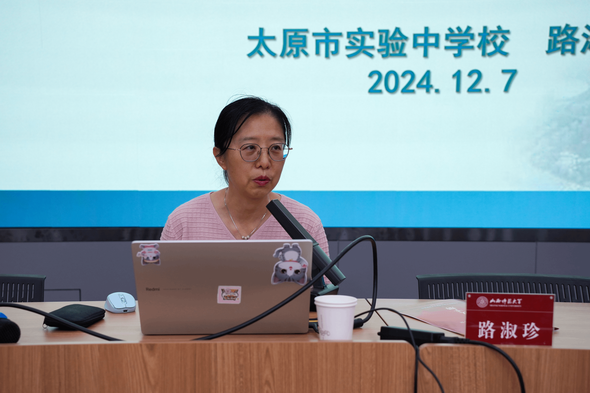 上午,山西大学附属中学牛俊凤老师以《新高考背景下高中思政教学的实践与思考》为题作报告,着重指出思政师范生需紧跟课改潮流,实现从“关注教”到“研究学”的转变。太原市实验中学路淑珍老师以《以自我发展助力强国建设》为题,分别阐述了有学上是保障、有梯子做支撑、作贡献是使命等重要问题。