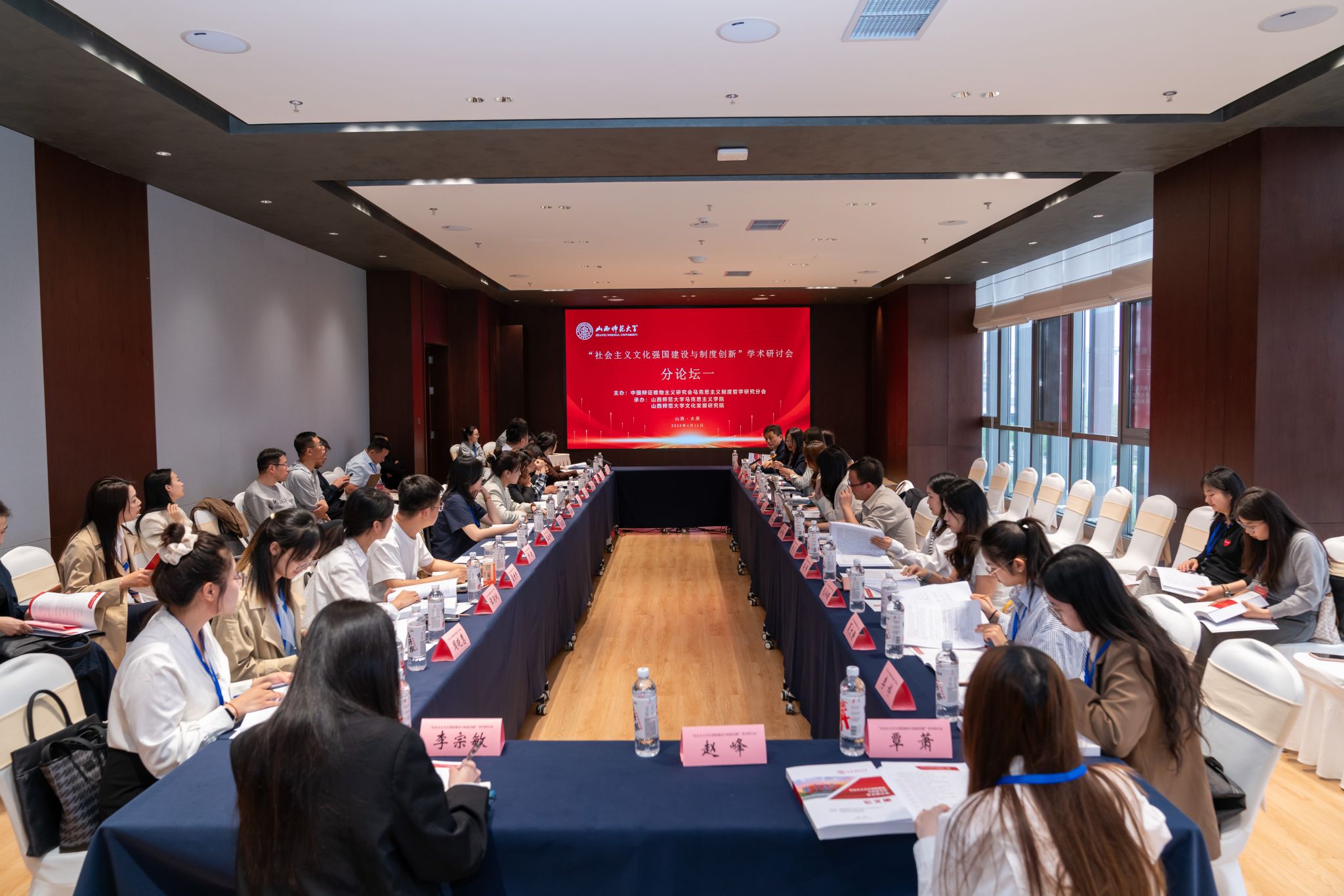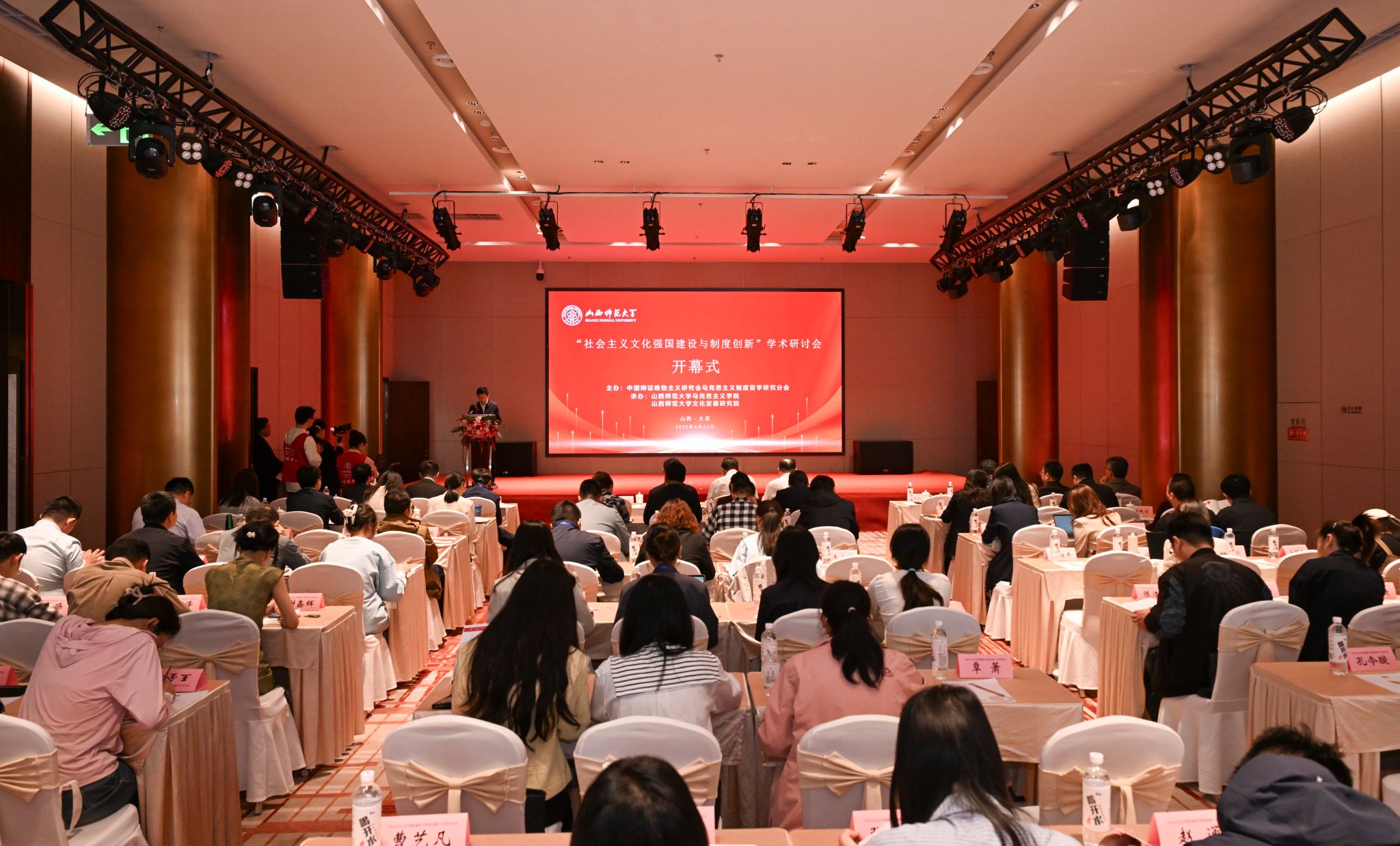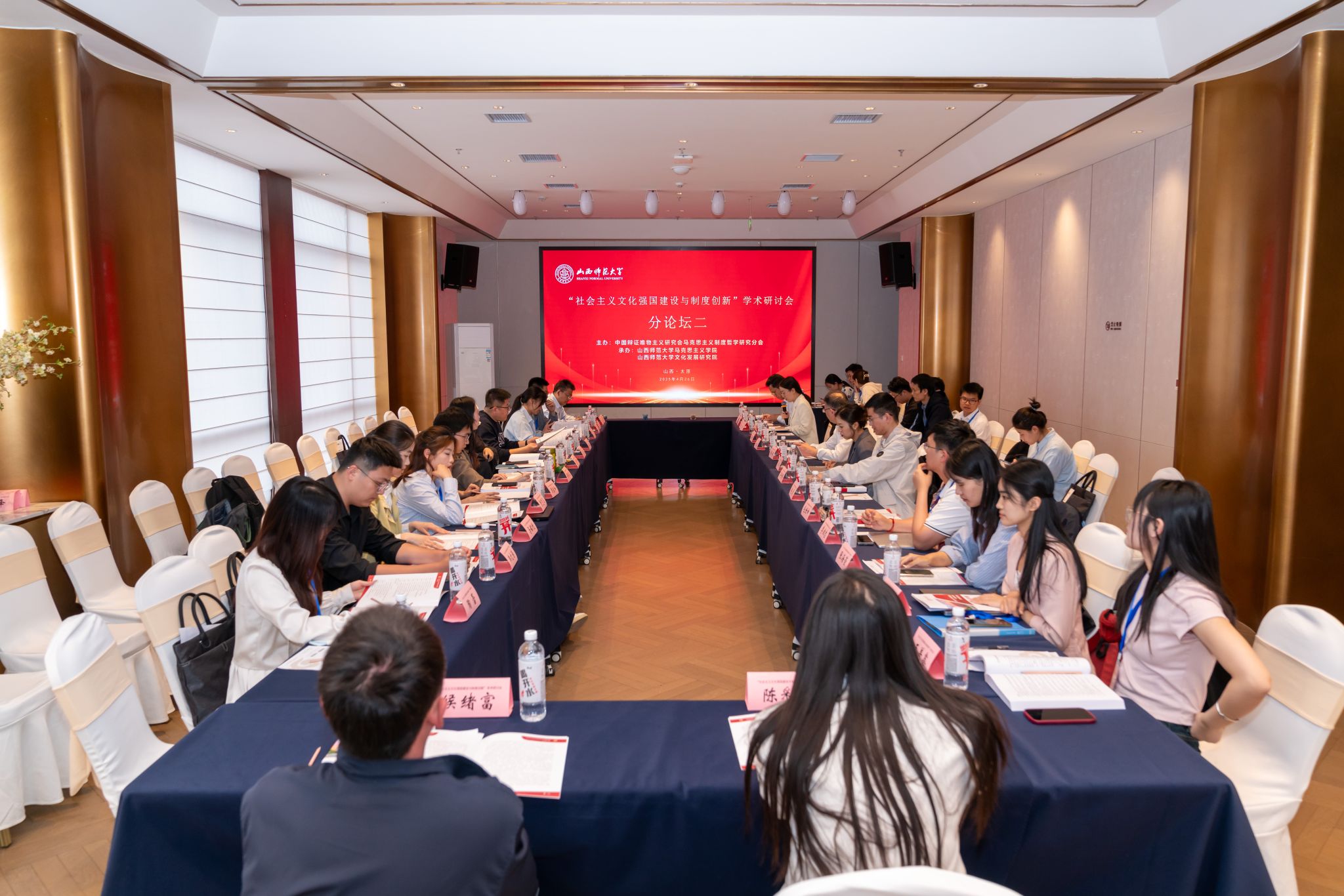 、文化发展研究院承办的“社会主义文化强国建设与制度创新”学术研讨会在太原召开。来自中国社科院、中共中央党校、中国人民大学、北京师范大学、西南交通大学、四川大学、东北师范大学、天津师范大学、华南师范大学、石河子大学、北方工业大学、福建省社科院、浙江省委党校等科研院所和高校的100余位专家参会。我校党委副书记王志强致开幕辞,山西省大中小学思政课一体化教研中心负责人、我校马克思主义理论学科带头人贾绘泽教授主持开幕式。