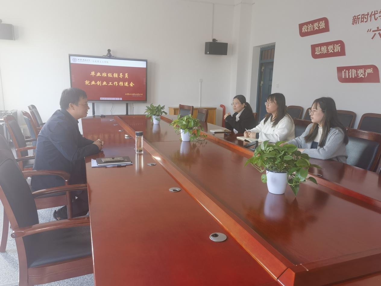 就业工作的相关要求和工作目标,他指出,各班辅导员要对本班学生做到一生一档,配备就业指导教师,充分了解未就业学生需求,有针对性的进行工作岗位推荐;要全面了解掌握班级考研学生初试情况,对考研不理想学生及时跟进指导,科学引导学生提前做好多手准备;要充分抓住春季招聘的机会,做好特岗教师、事业单位和考公务员等群体的就业服务工作,为大家做好政策解读和指导。