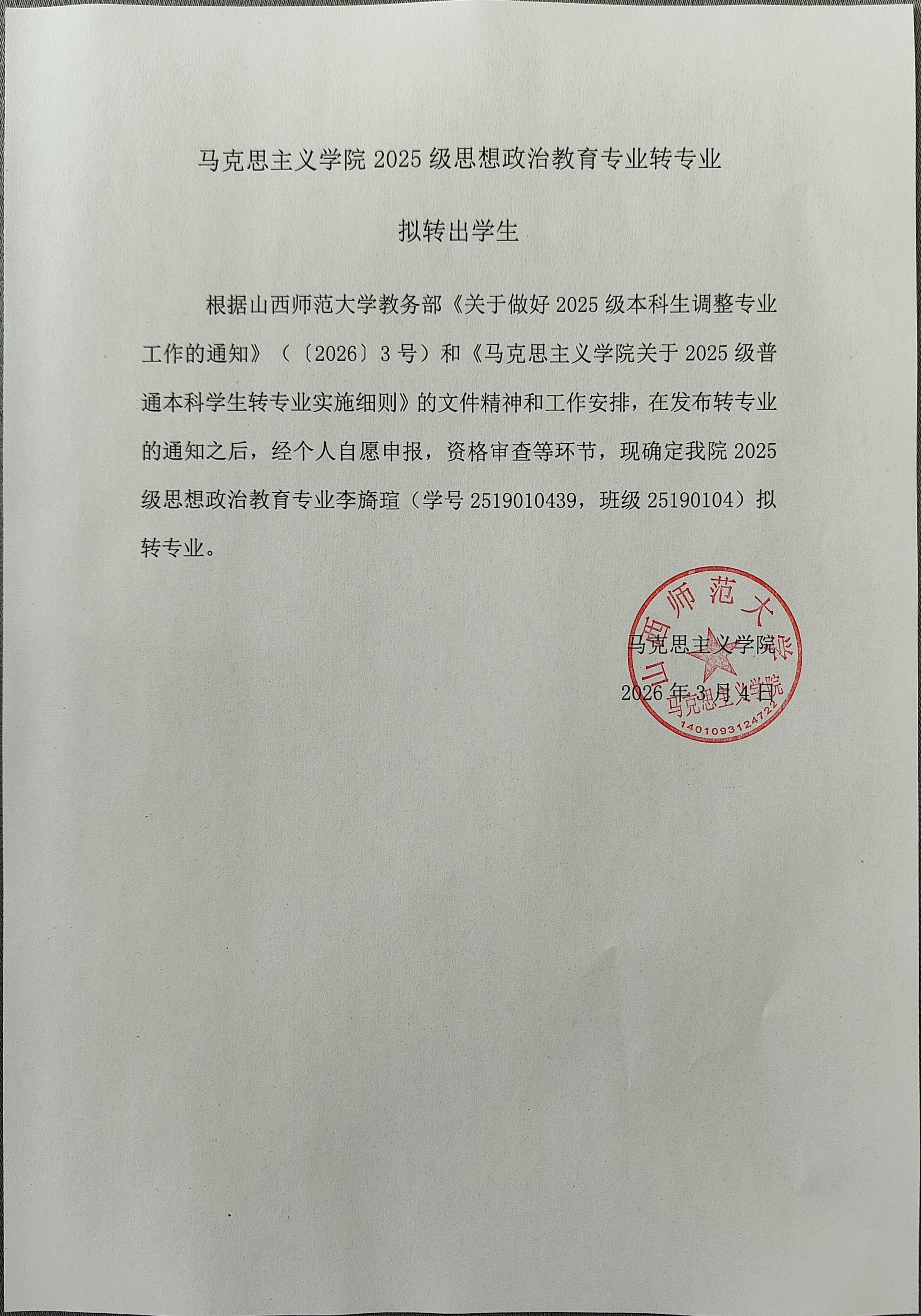 2026年春季拟转入赚钱软件 思想政治教育专业名单公示