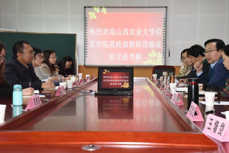 11月6日下午,山西农业大学信息赚钱软件 思想政治理论教学研究部杨凯主任一行7人赴赚钱软件 交流考察。在科学会堂A508会议室,赚钱软件 院领导、各教研室主任与杨凯主任一行就精品课程建设、教学改革、课程建设等问题进行了积极交流。院长贾绘泽教授主持。
