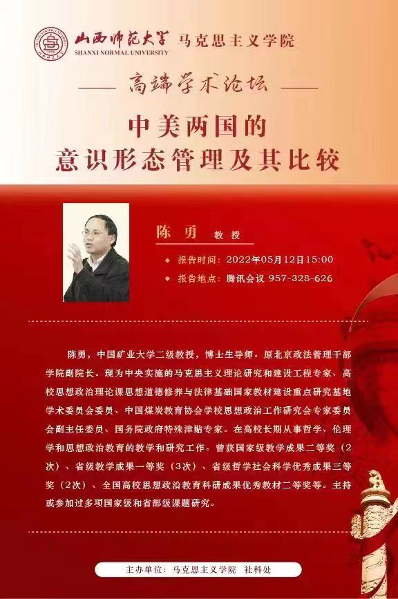2022年5月12日下午3点,中国矿业大学(北京)二级教授、博士生导师、马克思主义理论研究和建设工程专家、国务院政府特殊津贴专家陈勇教授应邀为赚钱软件