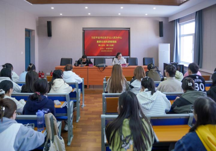 其次,李瑞芳老师作了题为《习近平总书记关于以人民为中心重要论述的逻辑理路》的报告。她从形成背景、主要内容、特征、内在逻辑理路四个方面论述了习近平总书记关于以人民为中心的重要论述