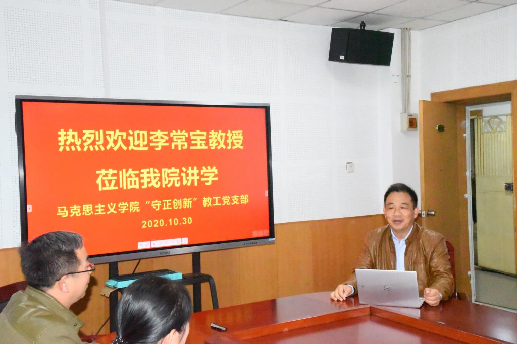 今年是中国人民抗日战争暨世界反法西斯战争胜利75周年。为铭记抗战历史、传承红色基因,继承和弘扬伟大抗战精神,20201030日下午,赚钱软件 “守正创新”教工党支部在科学会堂A508会议室开展纪念中国人民抗日战争暨世界反法西斯战争胜利75周年主题党日活动。本次活动特邀我校历史与旅游文化赚钱软件 李常宝教授作了《黎明前的黑暗:中共太行抗日根据地之1943年》的专题报告。此次主题党日活动由支部书记赵改萍主持,支部全体党员和入党积极分子参加。