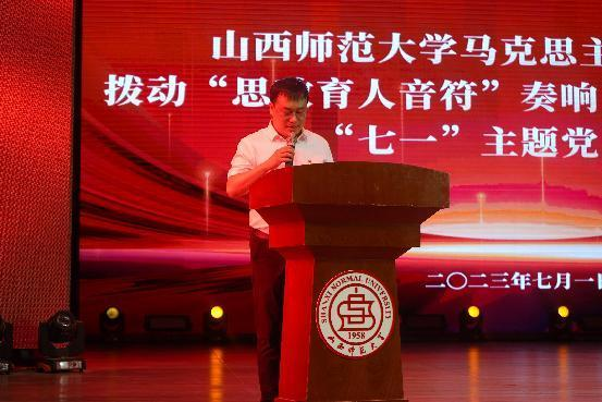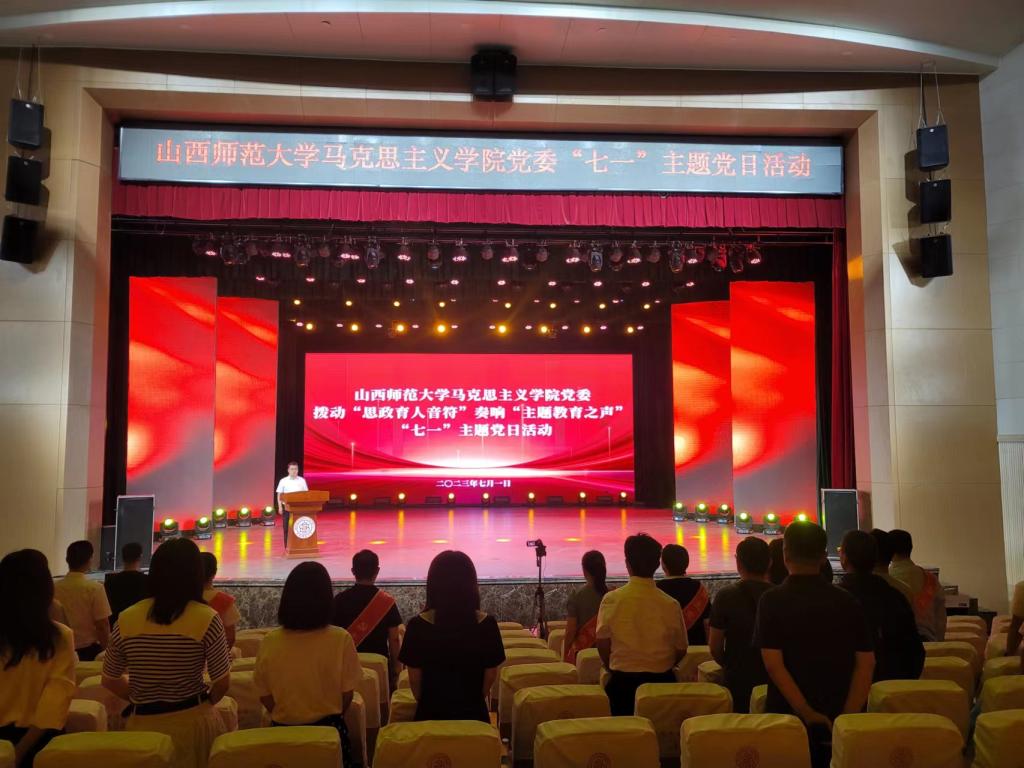 党委在北区文化艺术活动中心举行拨动“思政育人音符” 奏响“主题教育之声”“七一”主题党日活动。院党委副书记杜辉主持活动,全体教职工党员和特别邀请大学生理论宣讲团学生代表参加。