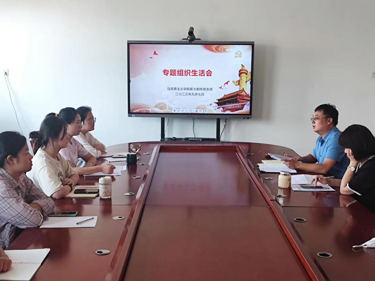 “薪火相传”党支部于2023年9月7日召开了专题组织生活会。会议由支部书记张玉婷主持,院党委副书记杜辉同志以普通党员身份参加会议,支部全体成员到场参加。