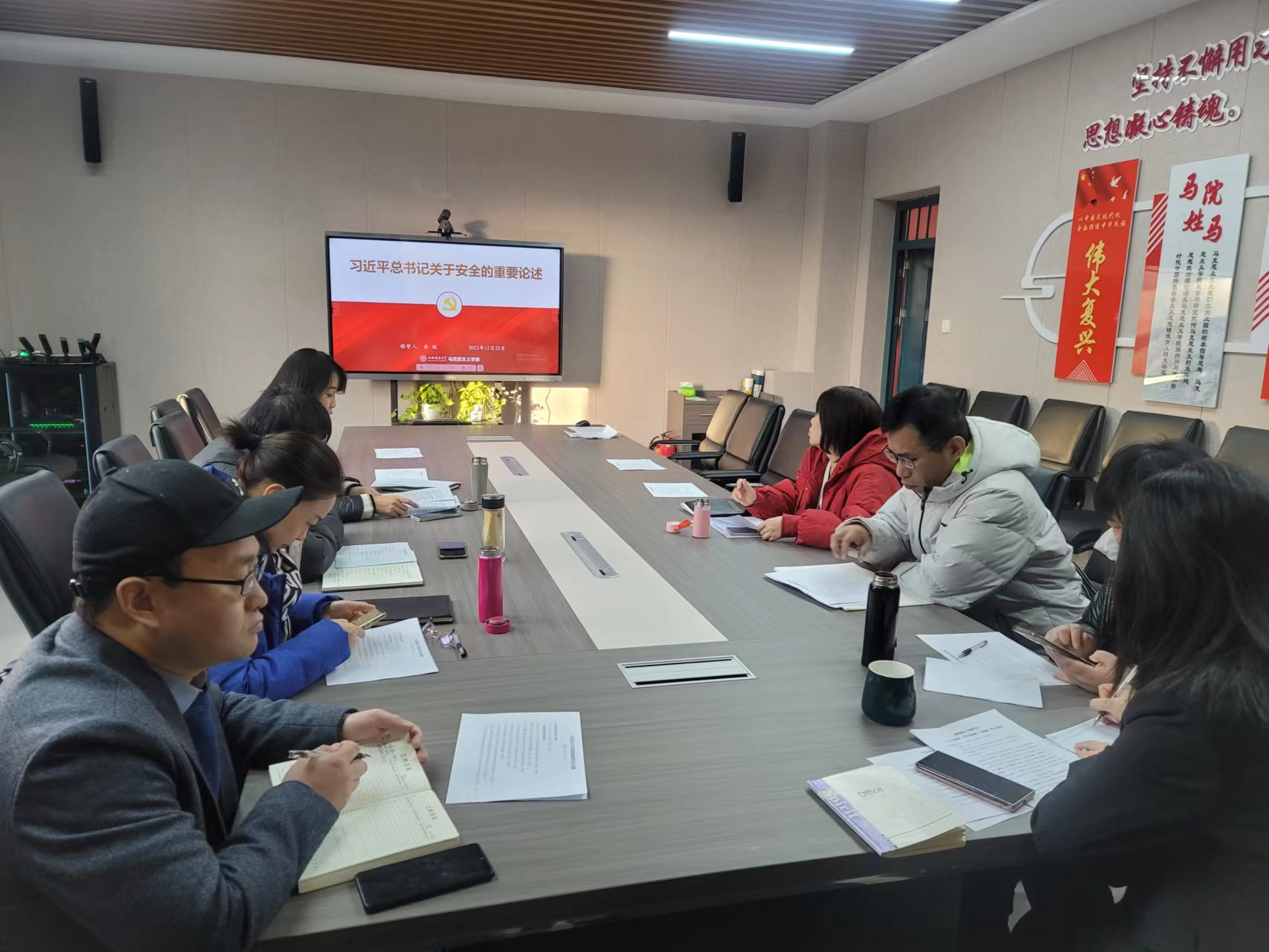 会上,乔书记专题领学了习近平总书记关于安全的重要论述,详细解读了《关于认真学习贯彻习近平总书记重要指示精神 全力做好防范应对低温雨雪冰冻灾害工作的通知》文件,结合近期学校近期召开的落实省委会议精神专题部署会议精神,强调要深入学习贯彻习近平总书记重要指示批示精神,落实省委部署要求,充分认识安全稳定工作的重要性,持续做好安全隐患排查整改。此外,临近研究生考试、期末考试和元旦,要坚持“高线”,守住“底线”,不碰“红线”,自觉抵制各种不正之风,做到令行禁止、遵规守纪。