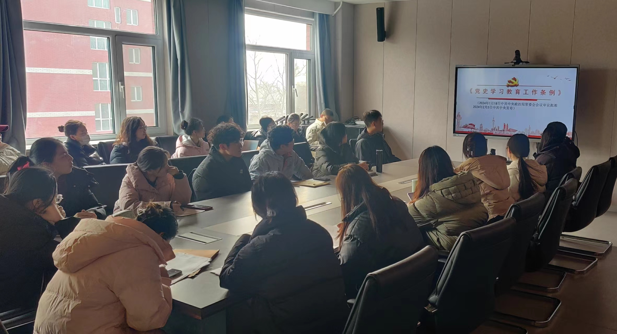 2024年1月18日中共中央政治局常委会会议审议批准、2月5日中共中央发布《党史学习教育工作条例》。《党史学习教育工作条例》以习近平新时代中国特色社会主义思想为指导,以党章为根本遵循,是系统规范党史学习教育工作的基础主干党内法规,具有很强的政治性、规范性和指导性,为开展党史学习教育提供了基本遵循。支部书记王艳从为什么要开展党史学习教育、党史学习教育工作的总体要求和主要任务、党史学习教育工作的领导体制和工作职责、党史学习教育的内容、党史学习教育的主要方式、党史学习教育工作的保障和监督等六个方面带领支部党员学习了《条例》的主要框架和内容,并突出强调了基层党组织承担党史学习教育工作直接责任、组织党史学习教育的具体工作。