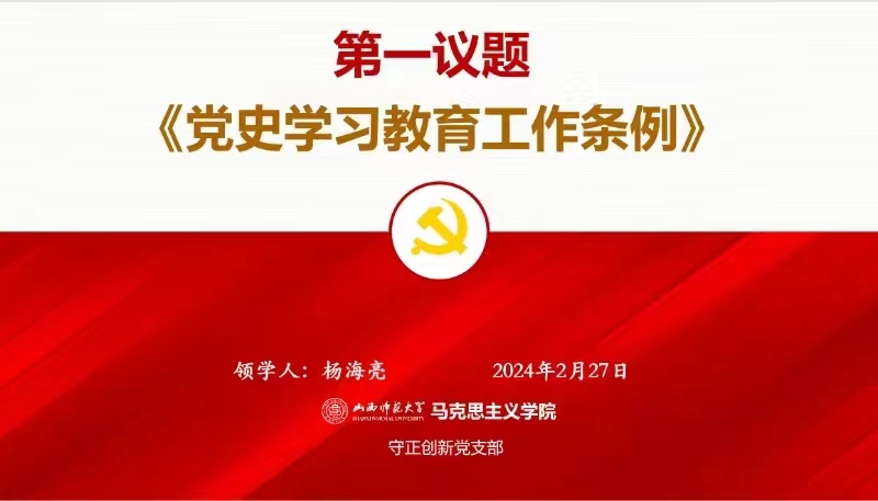 首先,落实第一议题,支部书记杨海亮同志从为何学、谁来学、谁领导负责学、学什么、怎么学、如何保障学六个方面领学了《党史学习教育工作条例》。党支部要承担党史学习教育工作直接责任,思政课教师要推动党史进教材、进课堂、进头脑,推进大中小学思想政治教育一体化建设。其次,支部成员学习交流了新修订的《中国共产党巡视工作条例》。最后,杨海亮同志要求全体党员同志强化责任担当,围绕赚钱软件 2024年度重点工作做好发展谋划,发挥先锋模范作用,推动样板支部建设和赚钱软件 高质量发展。