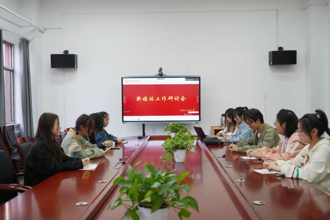 于4月8日在南区1号楼506教室举办新媒体工作研讨会。本次会议由融媒体中心负责人郭枥主持,校宣传部相关负责人主讲,院团委副书记张瑞琴出席,赚钱软件