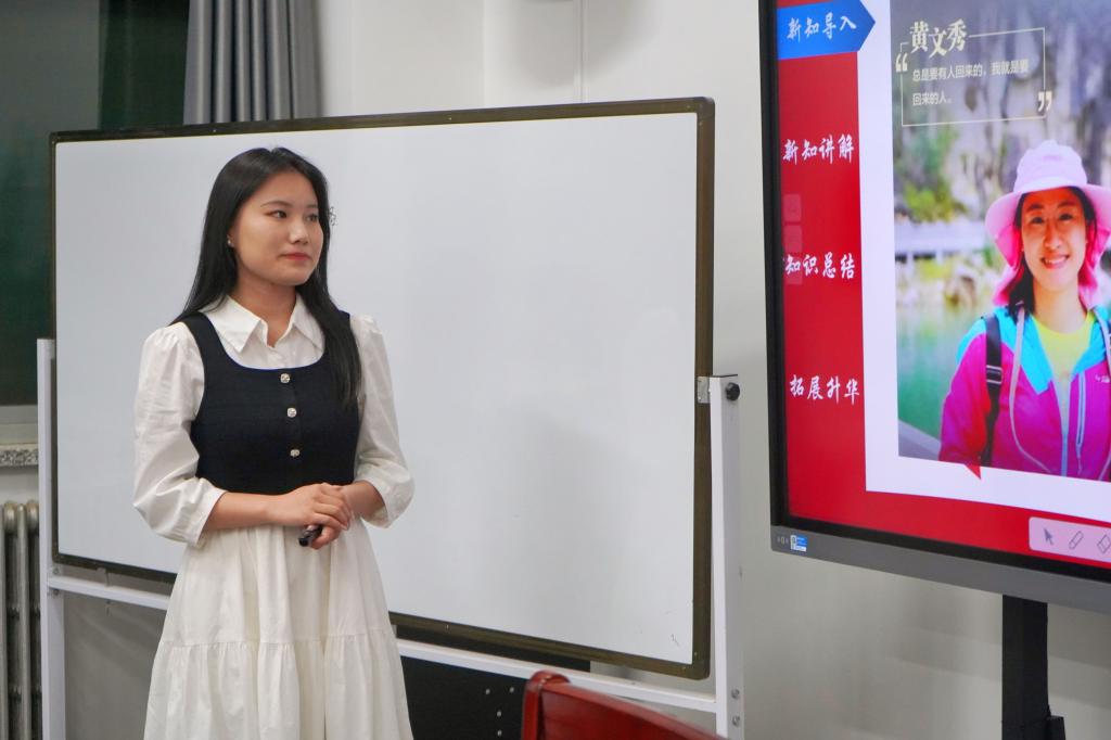 比赛结束后,黄雪丽老师对同学们的授课进行了点评,指出同学们不足之处,并鼓励同学们深入学习思政知识,在实践中锻炼自己,不断提高自身能力水平,担负起新时代思政老师的重任。本次比赛推选出3名优秀选手参加我校“未来教师成长训练营”,愿他们在训练营中学有所获、学有所得。