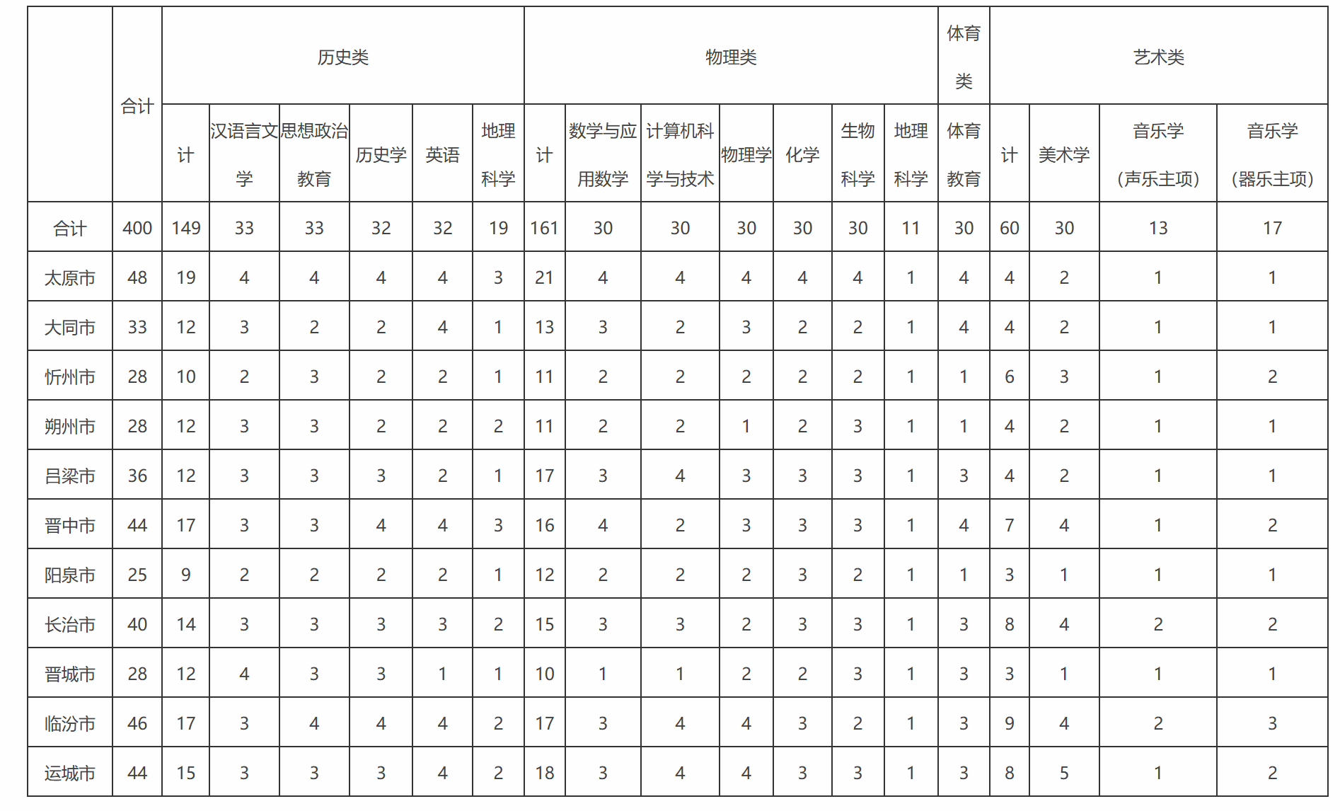 山西师范大学2025年地方公费师范生分市分专业分科招生计划