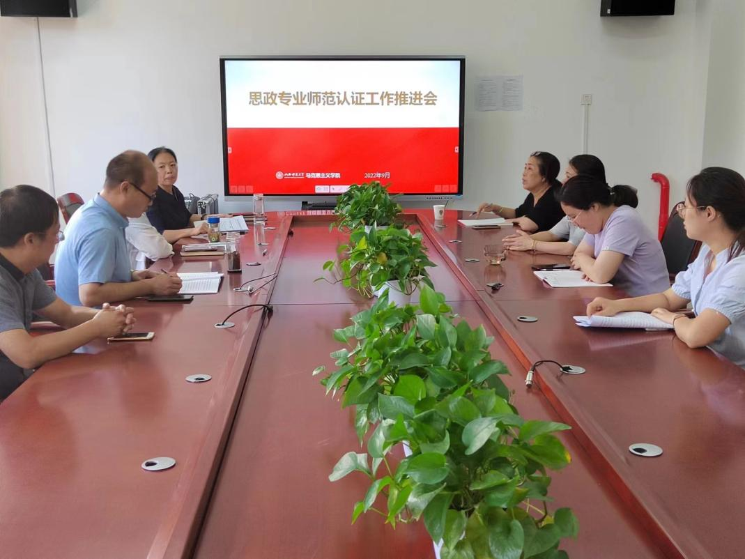 组织召开思想政治教育专业师范认证工作推进会。师范认证相关工作人员参加会议,会议由教学副院长赵改萍主持。